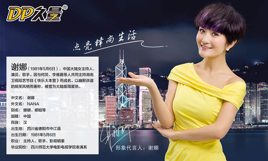 2014年7月28日, DP久量正式與國(guó)內(nèi)著名綜藝節(jié)目主持人——謝娜小姐簽定品牌代言合作協(xié)議。 眾所周知,謝娜以其幽默詼諧的搞笑風(fēng)格而著稱,被譽(yù)為大陸版周星馳。她的快樂(lè),已經(jīng)深入人心,快樂(lè)了別人也快樂(lè)了自己,那是她的天性,也是她的武器。與DP久量品牌之調(diào)性相吻合,DP久量倡導(dǎo)的是一種先鋒時(shí)尚文化,DP久量是一個(gè)年輕個(gè)性化的品牌,富有時(shí)尚感、親和力。此次DP久量斥巨資盛邀謝娜小姐出任品牌代言人,可謂是“天作之合”。