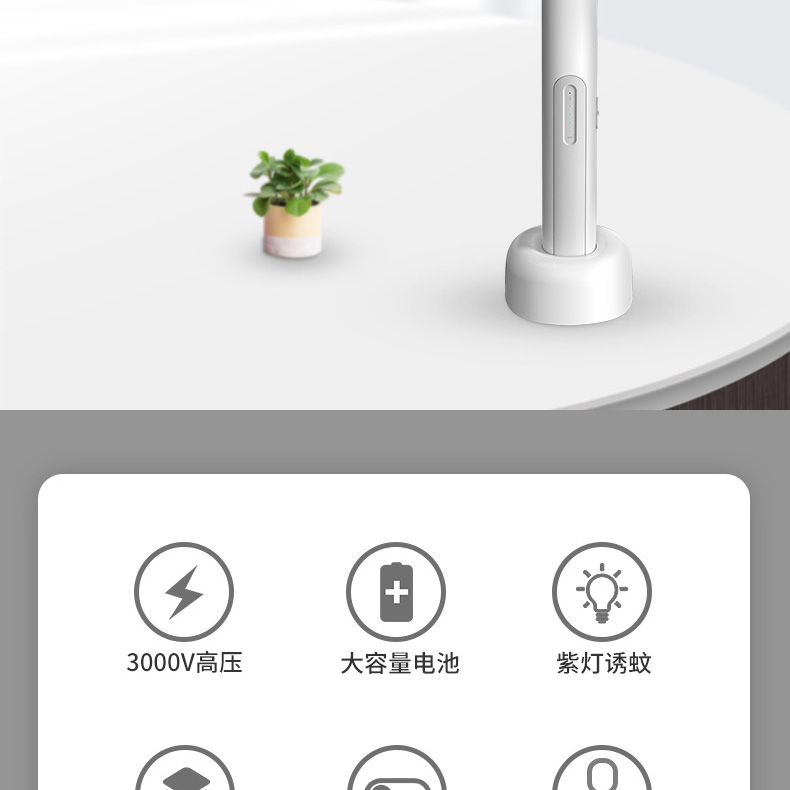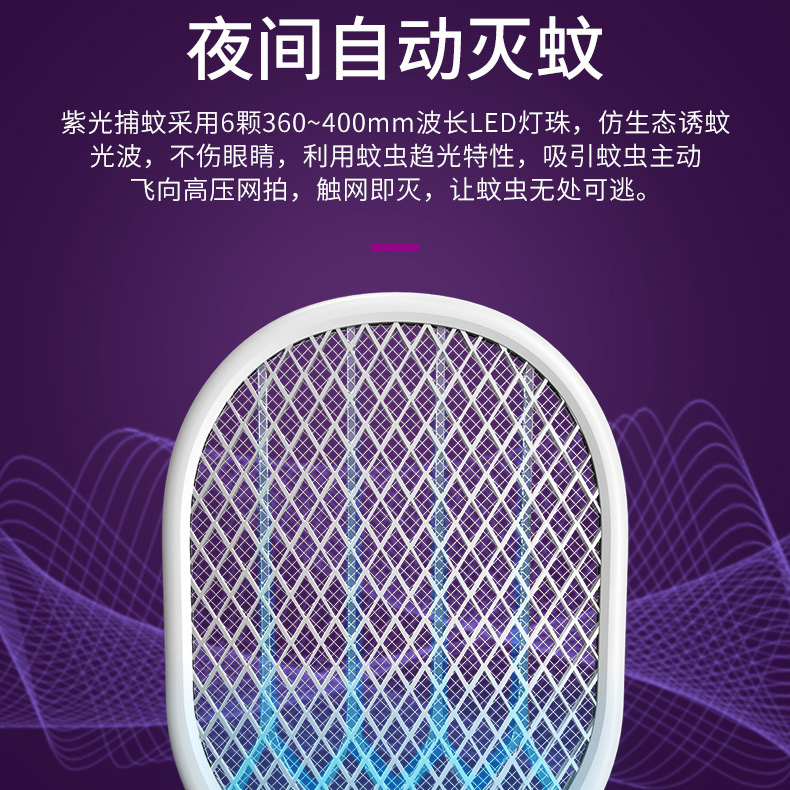 產(chǎn)品帶有6顆誘蚊紫光燈,特選360-400nm誘蚊波長(zhǎng)。